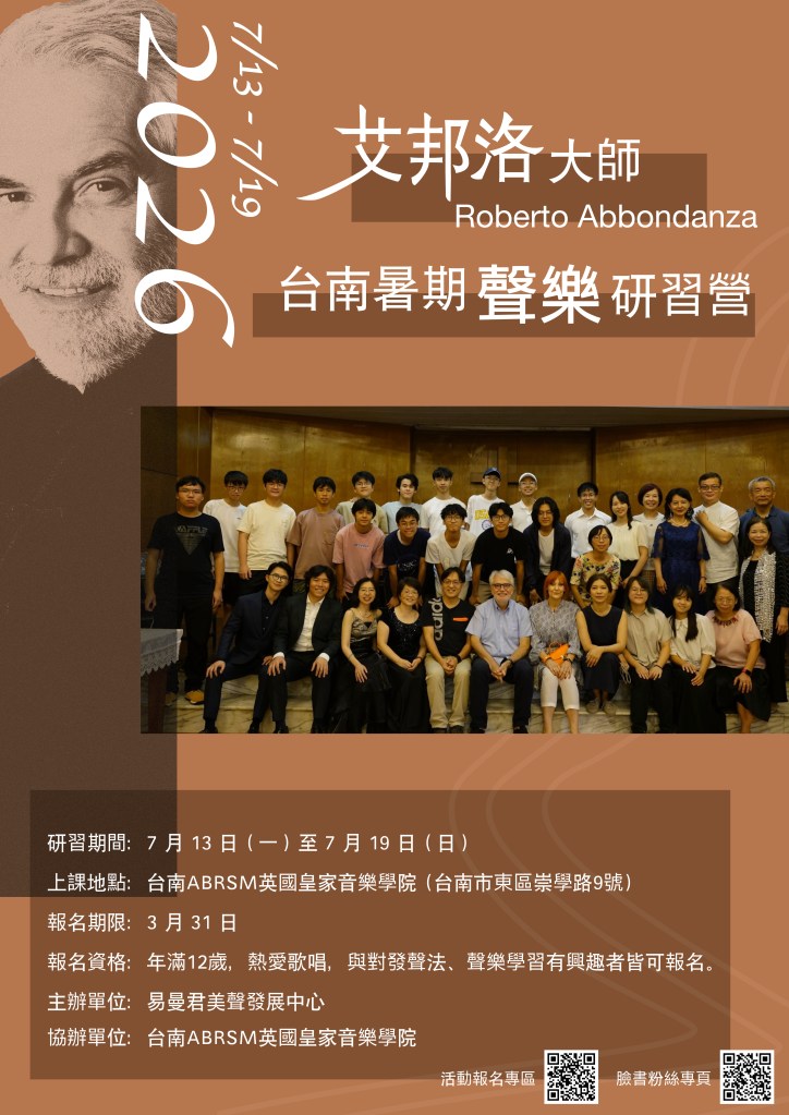 【2026艾邦洛大師台南暑期聲樂研習營】報名專區